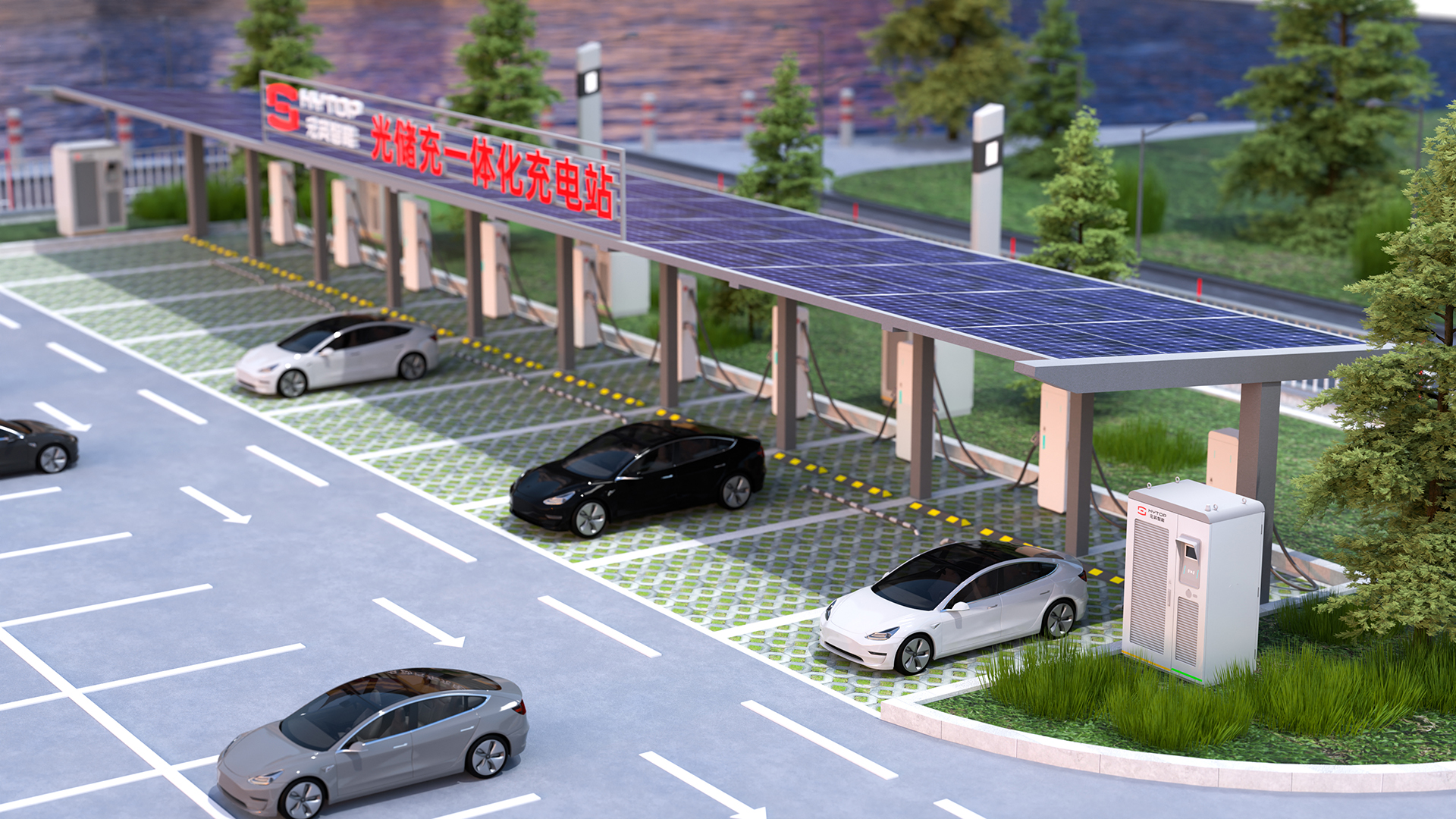 Based on the deep customization of the demonstration station for new energy vehicles, the comprehensive energy replenishment system integrating "light, storage, charging and switching", realizes green charging for new energy vehicles, solves the real problems of low charging efficiency, high construction and operation cost, and difficulties in power supply of charging infrastructures for special-purpose vehicles, and effectively reduces carbon emissions to provide more green value for the new energy industry.